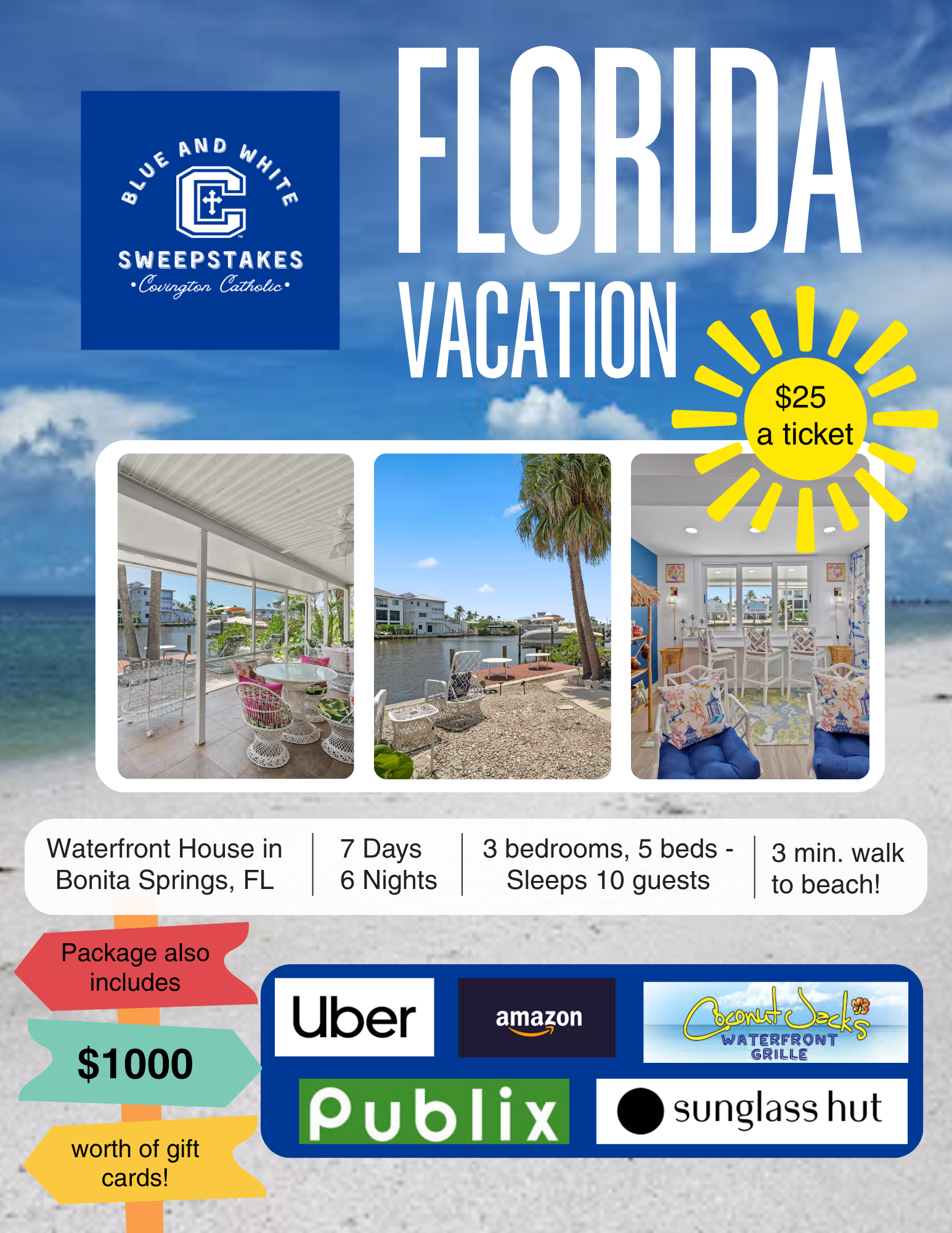 The current sweepstakes raffle is a "FLORIDA VACATION" for $25 per ticket.